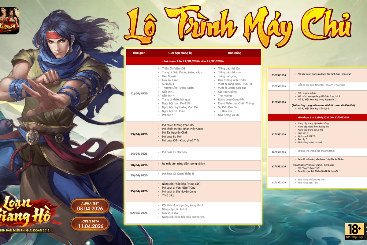 Để thuận tiện cho việc khám phá vùng đất mới ra mắt vào ngày 11/04/2026, kính mời quý nhân sĩ gần xa cùng tham khảo lịch trình hoạt động của máy chủ mới Loạn Giang Hồ phiên bản 2012.